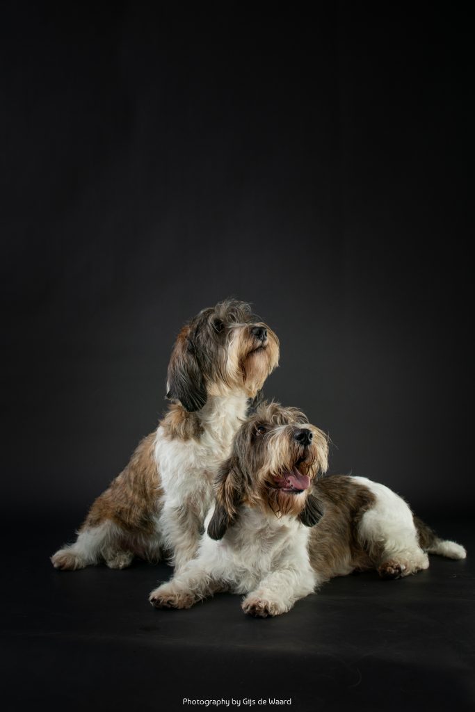 We absolutely had decided only to keep one puppy from the litter before Feliz gave birth. But the split second this boy was born I was smitten with him. And this boy was determined to stay. He absolutely knew how to win even a bigger part of my heart by kissing me before he could see me. So it was decided we couldn’t part and the boy would stay. And we never regretted it for a single second. Besides his awesome looks, being a pretty strong boy with a great butt, sweetest head and amazing coat, he turned to be the most loving boy. He loves all people young and old, but only rests with his human mommy. So every girl is looking for her own prince(ss), but I have my own knigt. Ivanhoe is also great with all dogs and he is still his moms favourite kid. Every day Feliz and Ivanhoe have their playtime together.